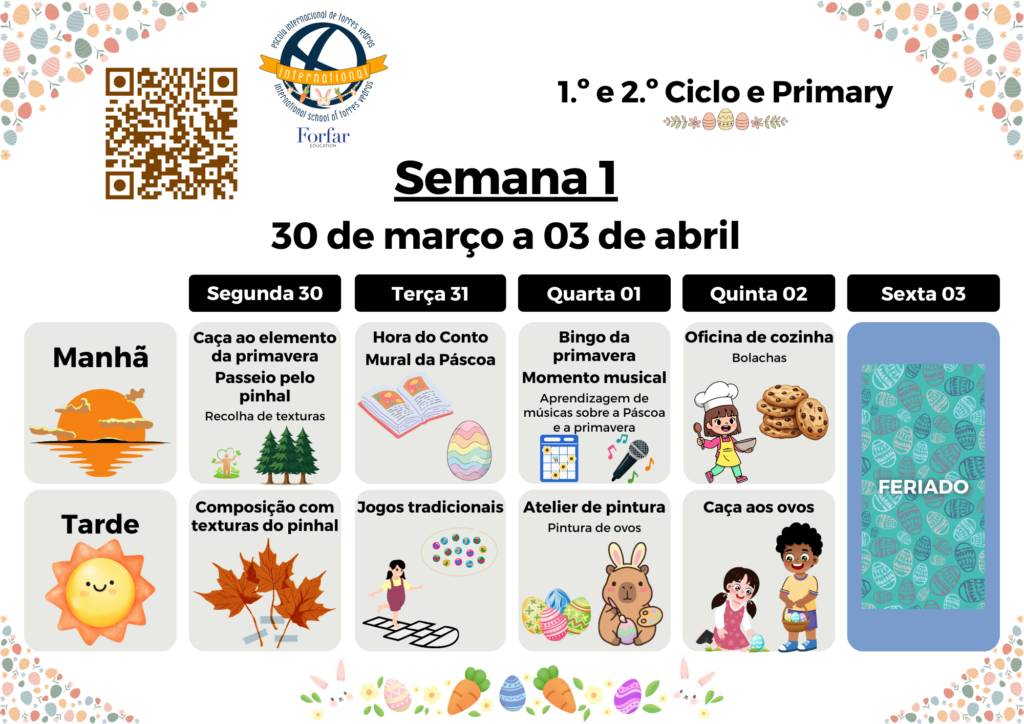 Atendendo a que as atividades letivas do 3.º Período terão início a 13 de abril de 2026, solicitamos que, caso necessite que o seu educando permaneça na Escola durante o período de interrupção, realize a sua inscrição nos links abaixo.